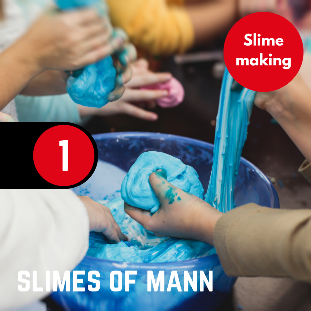 - Slime of Mann – selling ready made slime, slime kits and kids can come and make their own slime